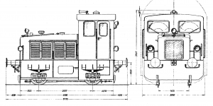 Abbildung 1: Seitenansicht und Vorderansicht der Diesellokomotive